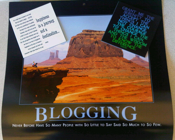 On my desk I have several reminders to live life.  Magnets and posters with quotes from Thoreau and Souza share space with a copy of the Serenity Prayer and I keep a Despair.com calendar at my desk to remind me not to take life too seriously.