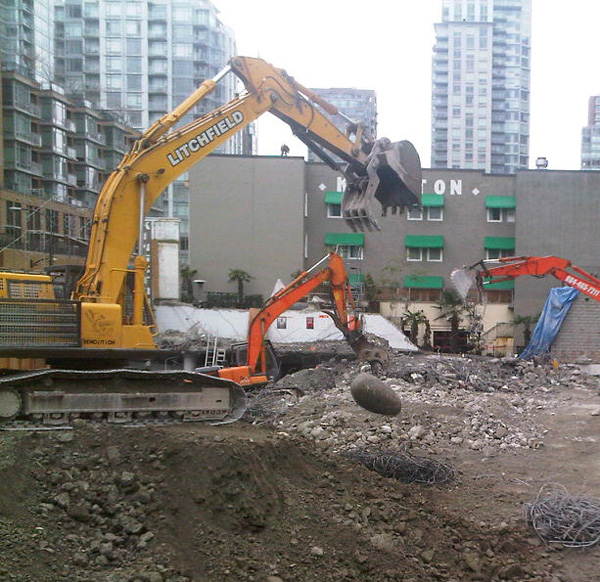 NB. The picture from today’s post is a digger from a local building demolition site. I was mesmerized watching it repeatedly pick up and drop a huge boulder. The machine operator was using the rock to crush a pile of re-bar. It was funny and impressive at the same time; the power and finesse of construction machinery is very strange.