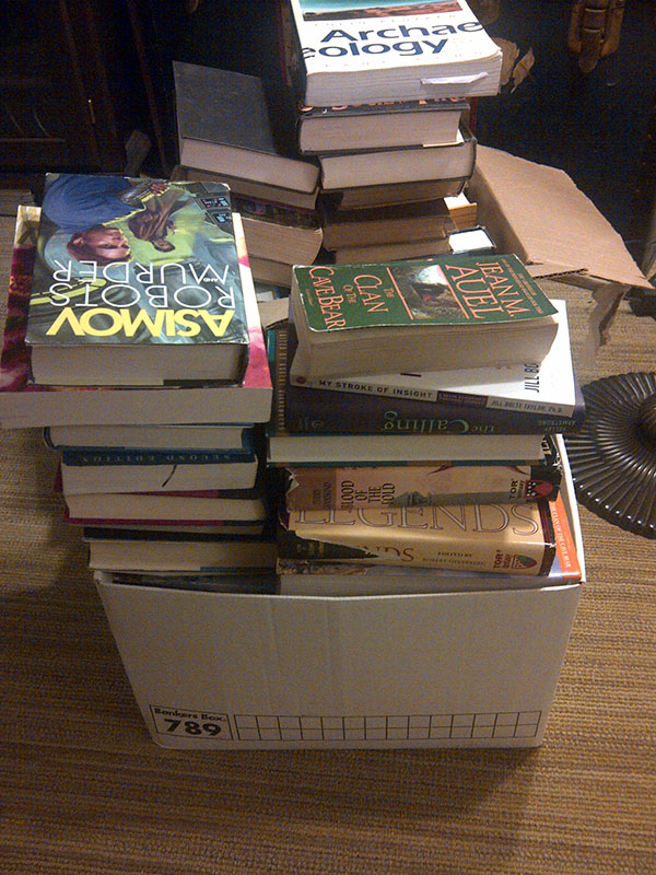 The books I’m keeping are in their place, layers of dust removed and now I have several overflowing boxes of books looking for new homes.