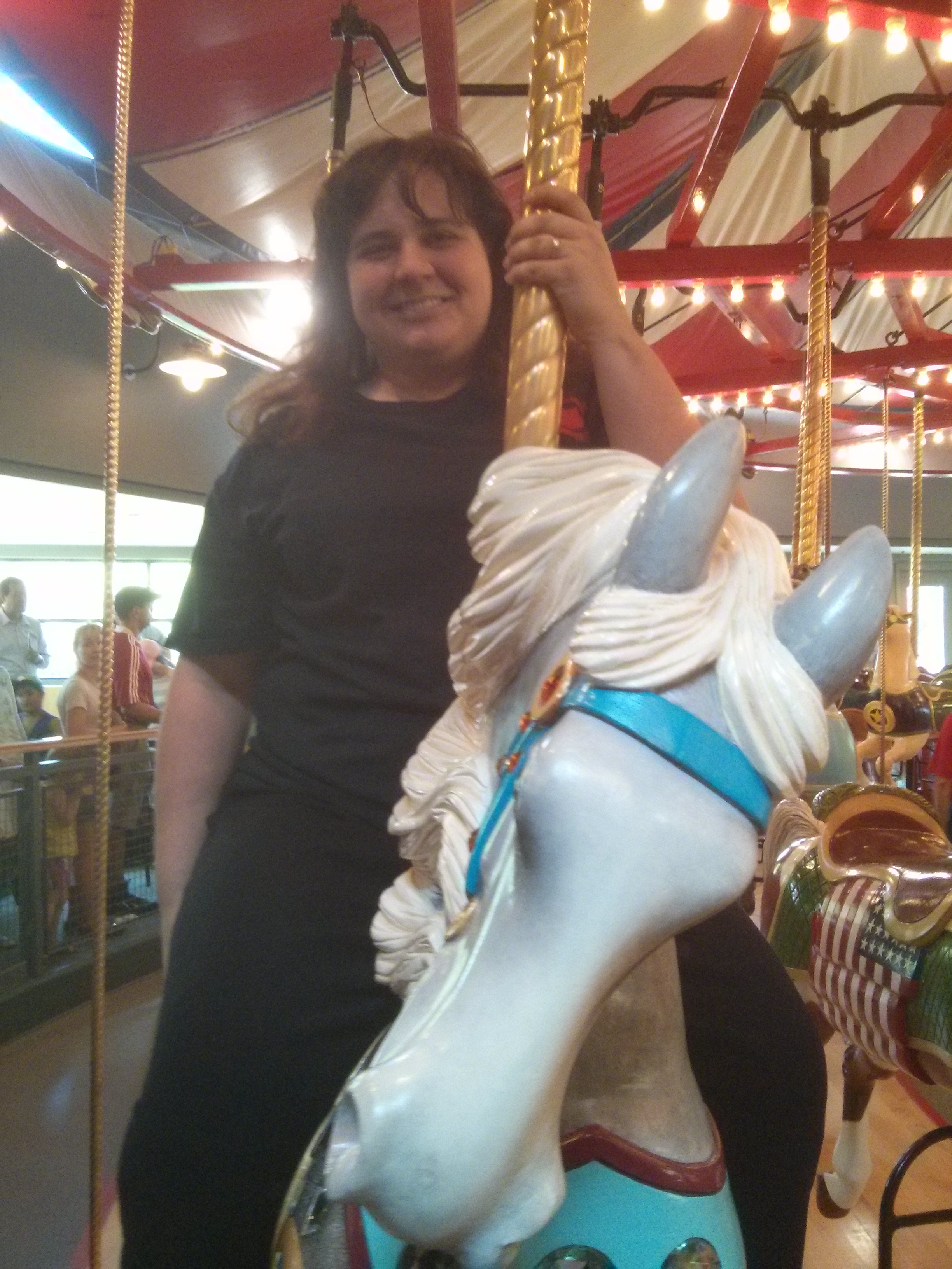 Rides that are not on my Hell NO! list. The carousel. The teacups. The big slide (big being a relative term) and the small swings that used to be the big swings before they brought in the suicidally big swings.