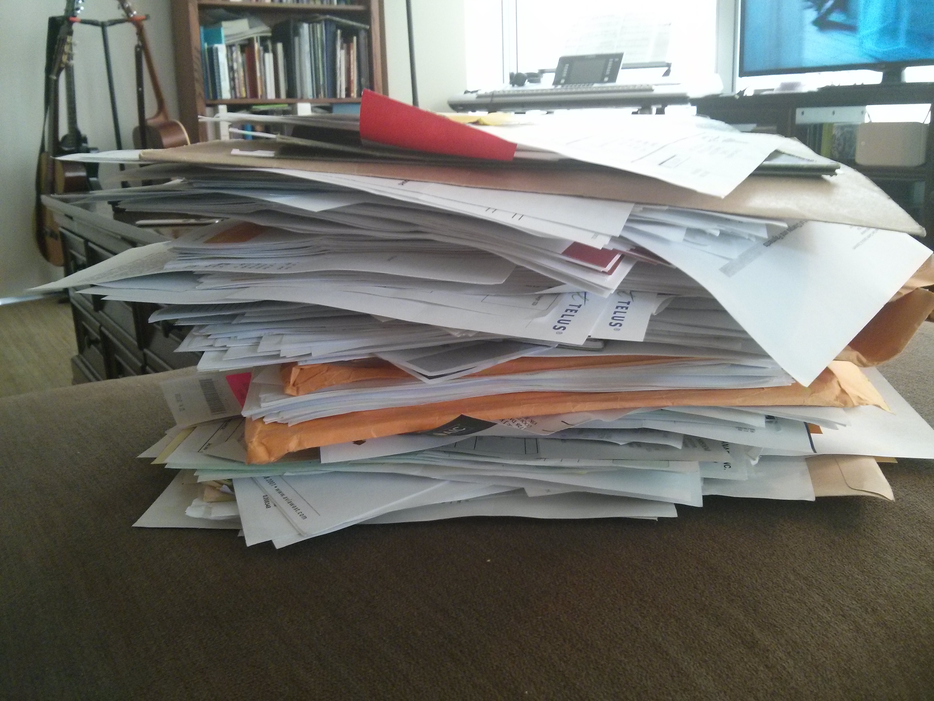 My filing system is yet more proof that I’m on the slippery slope to hoarding. This two foot pile of files was from ONE DRAWER…I have six.